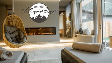Alpenparks Appartement Blick in den Wohnraum mit Feuerstelle | © Alpenparks